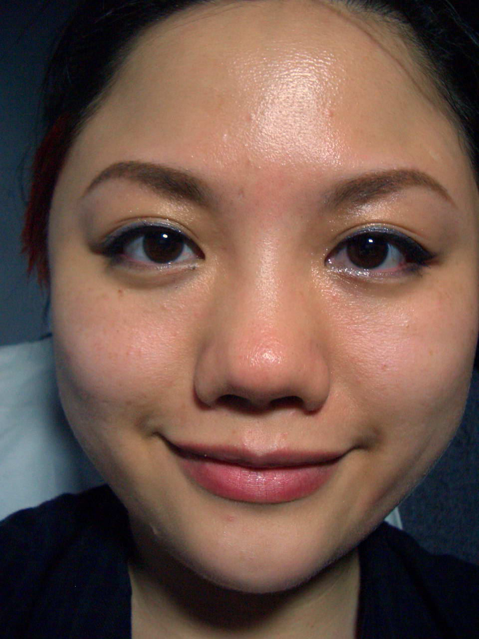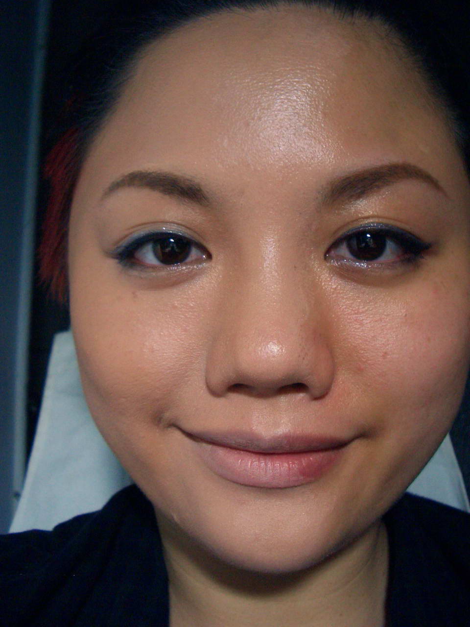 再來看上完底妝產品後的樣子,使用產品有MUFE face and body liquid make-up 色號N 2 & M.A.C. hyper real/pressed 色號Warm rose FX & E. funkhouser contouring powder 色號level #2 medium,我把這水粉霜來來回回用粉底刷上了至少有6層,值得注意的地方是我在鼻子部位都是用由下往上的方式上,期間就是每上一層水粉霜就用永和三美人全臉彈點過一次,如此重複6次,然後用刷子以畫小圓圈的方式上MAC的蜜粉餅,再用E. funkhouser的修容粉修容臉頰跟鼻梁,我也不知道看起來有沒有粉很厚,請大家留言跟我說,我自己身上的東西我都看不出個所以然來,拜託囉!
